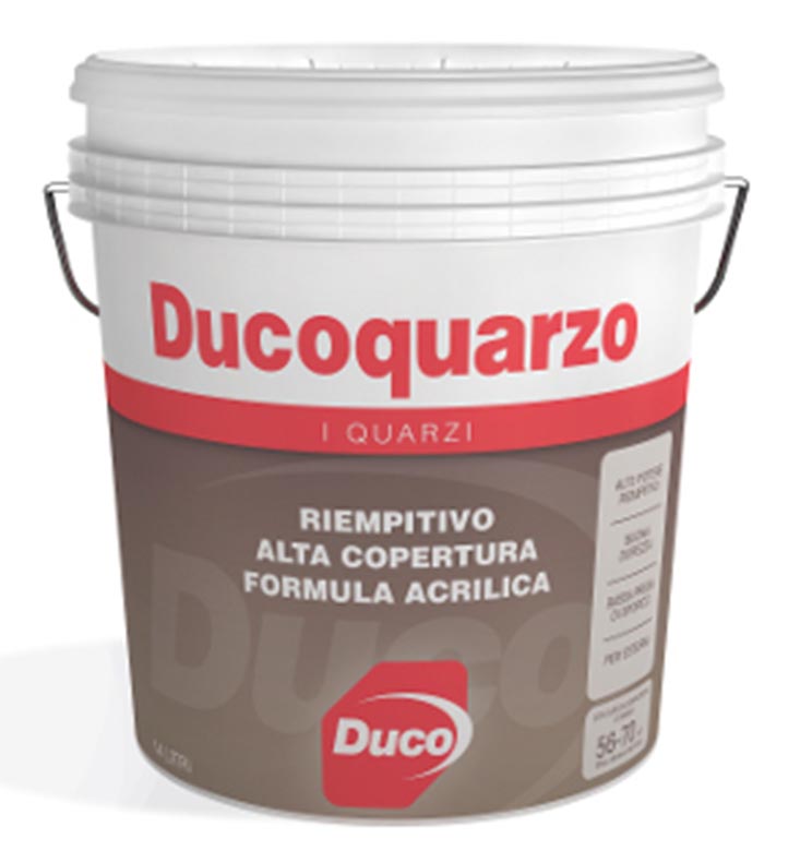 Ducoquarzo è una pittura al quarzo apposita per esterni. Ha un alto potere riempitivo ed elevata copertura anche su supporti disomogenei.